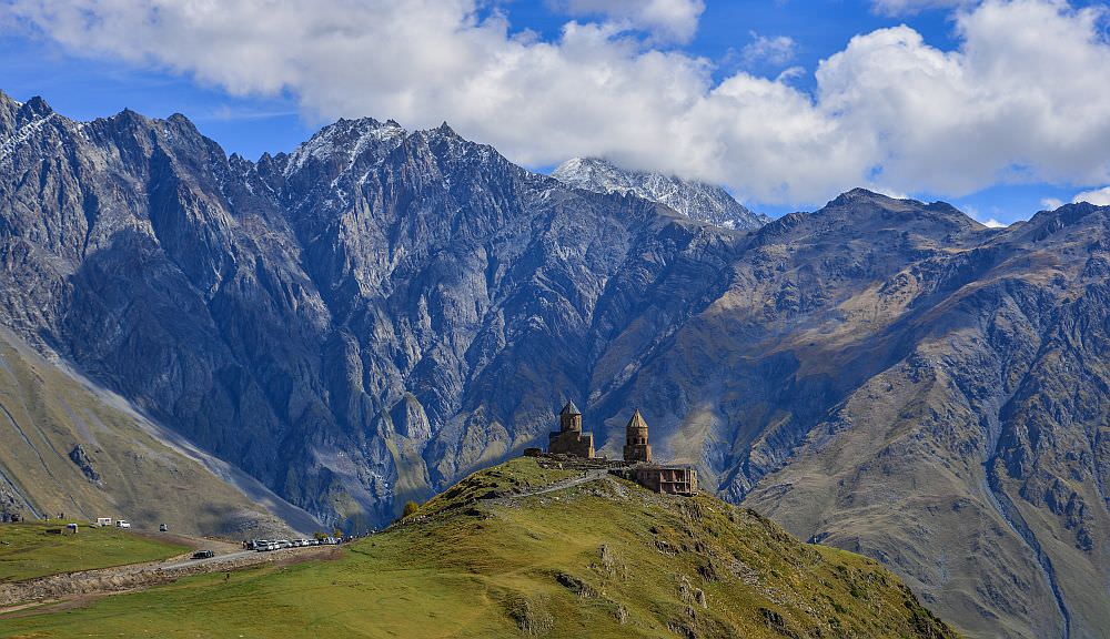 Kazbegi is a mountain destination focused on landscape rather than architecture. You drive through high mountain roads, stop at viewpoints, visit Gergeti Trinity Church, spend time in Stepantsminda, and return by the same route or stay overnight.