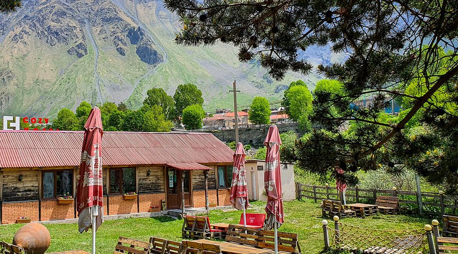 After visiting the church, most tours stop in Stepantsminda itself. The town is small and functional, with cafés, restaurants, and open views toward the mountains.