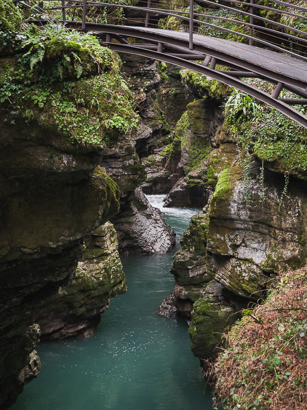 Inside the canyon, visitors follow a maintained walking path with railings and bridges. The walk is short, flat, and suitable for most fitness levels.