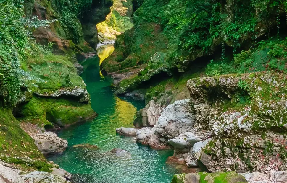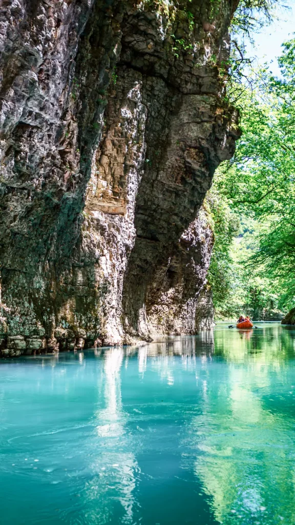 Martvili Canyon is a short nature stop with easy walking and optional boating. You arrive by car, explore briefly, and continue the route.