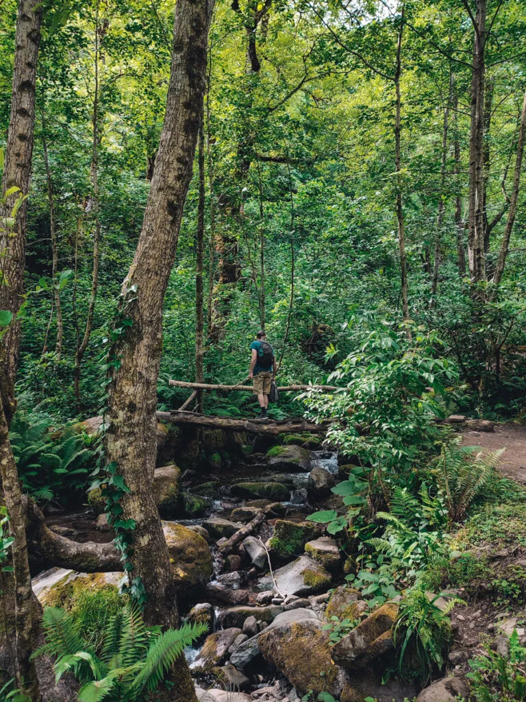 Trails lead to waterfalls and natural rest points, which are usually the main destination before returning the same way.